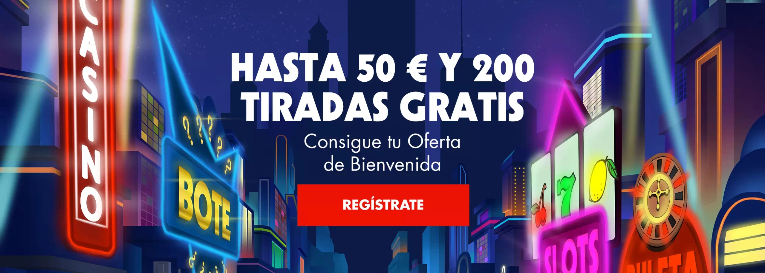 | Bono de bienvenida | Hasta 50 € y 200 tiradas gratis |
